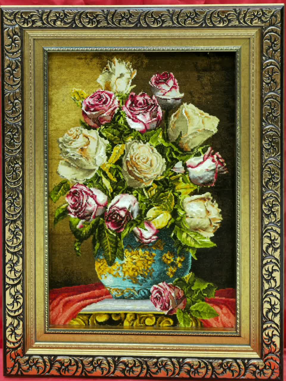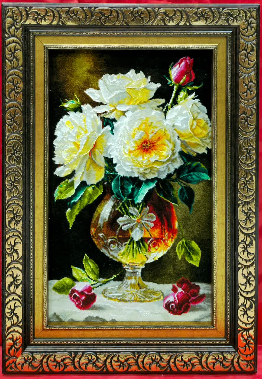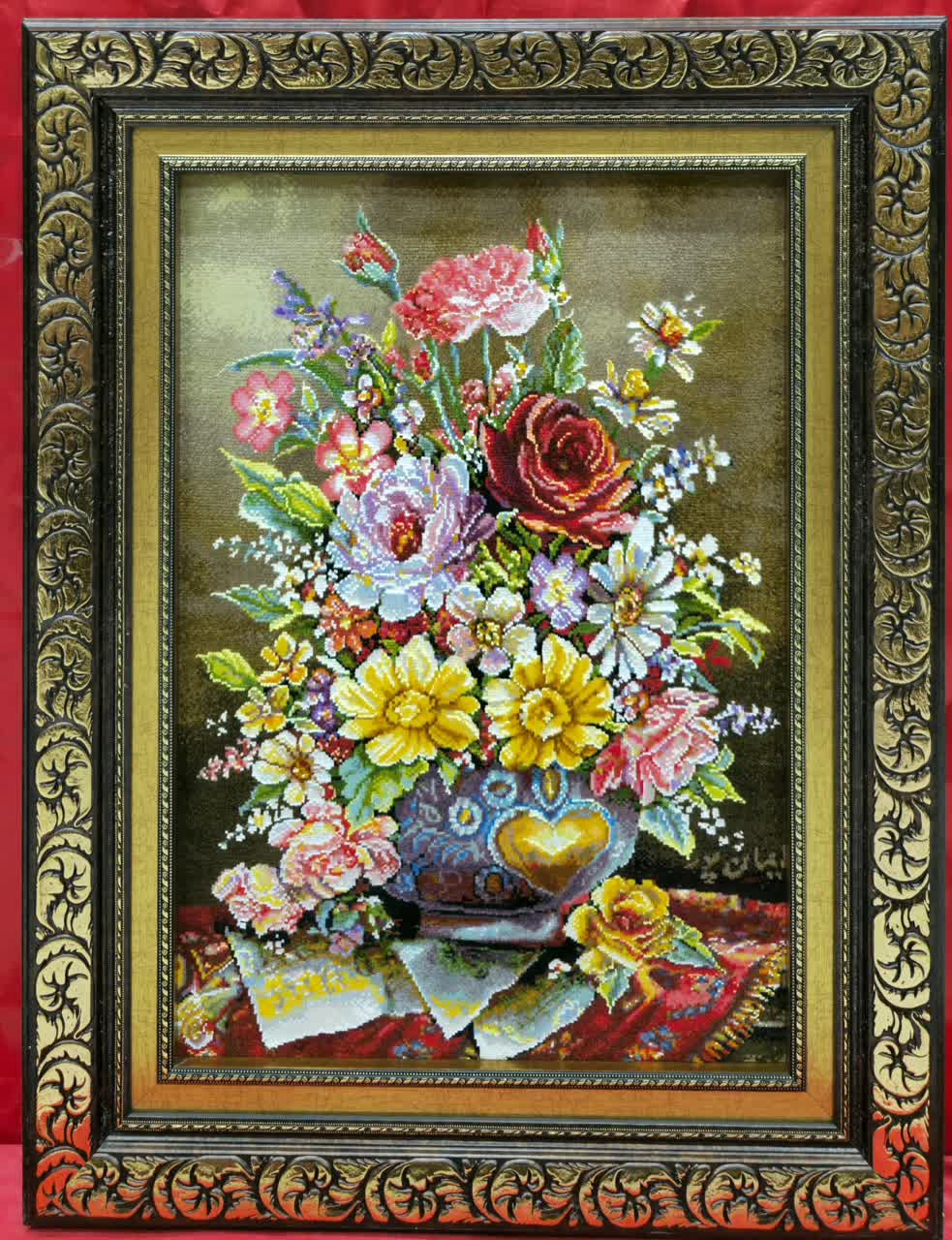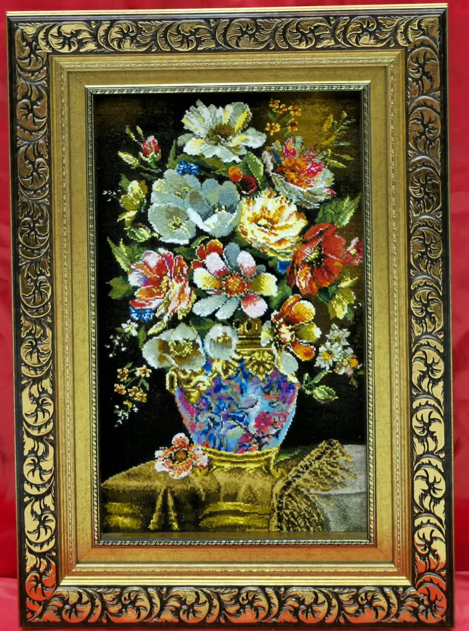 نخ ونقشه تابلوفرش طرح گل وگلدان کدگل 600 کامل fll540