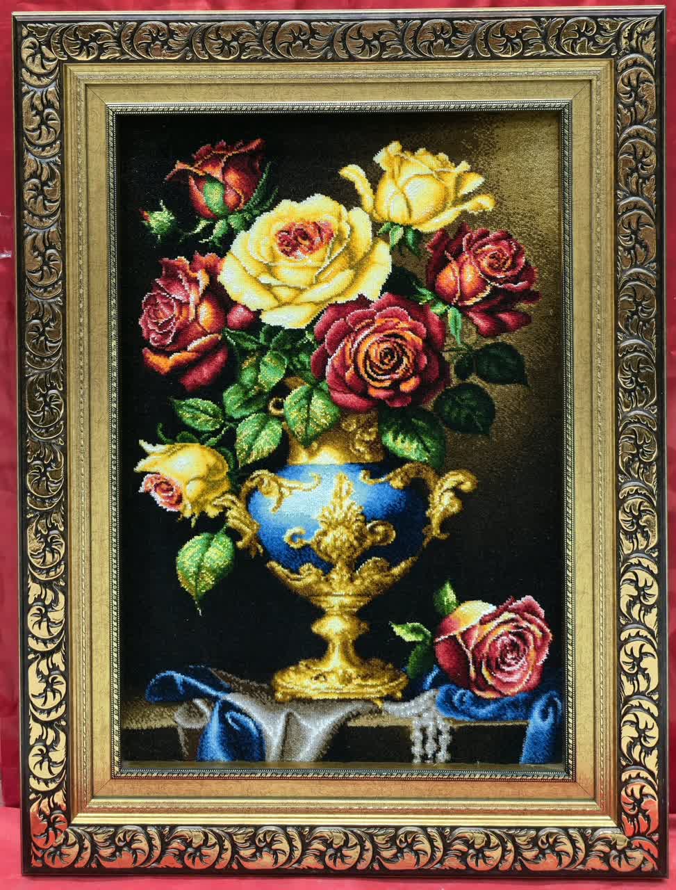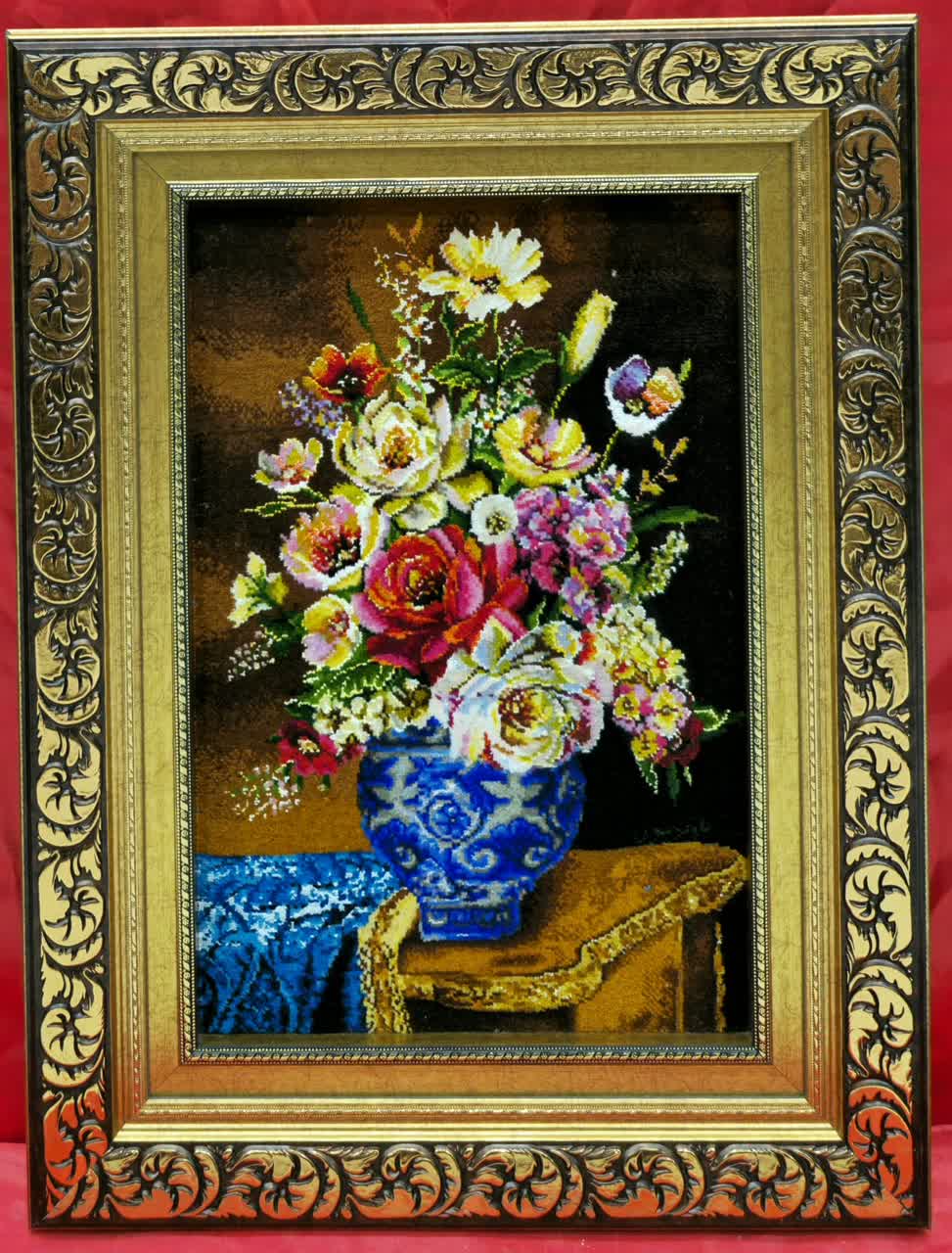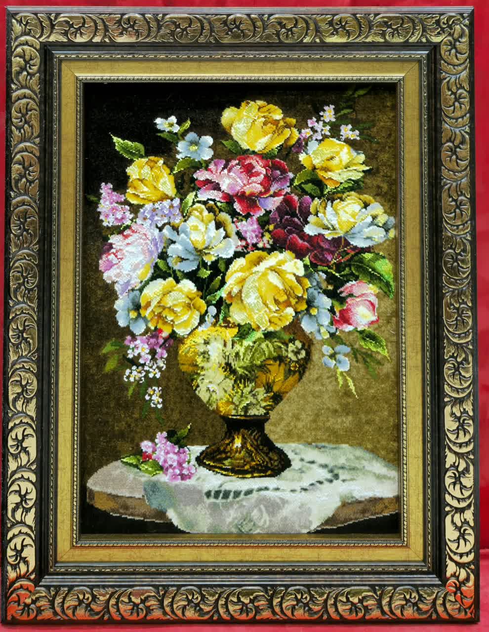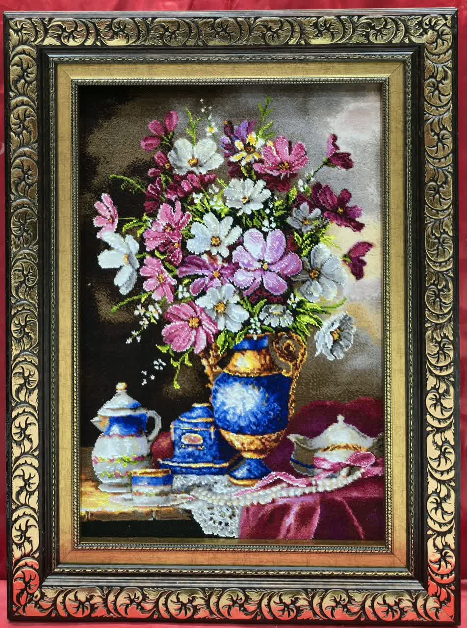 نخ ونقشه تابلوفرش طرح گل وگلدان کدگل 600 کامل fll540