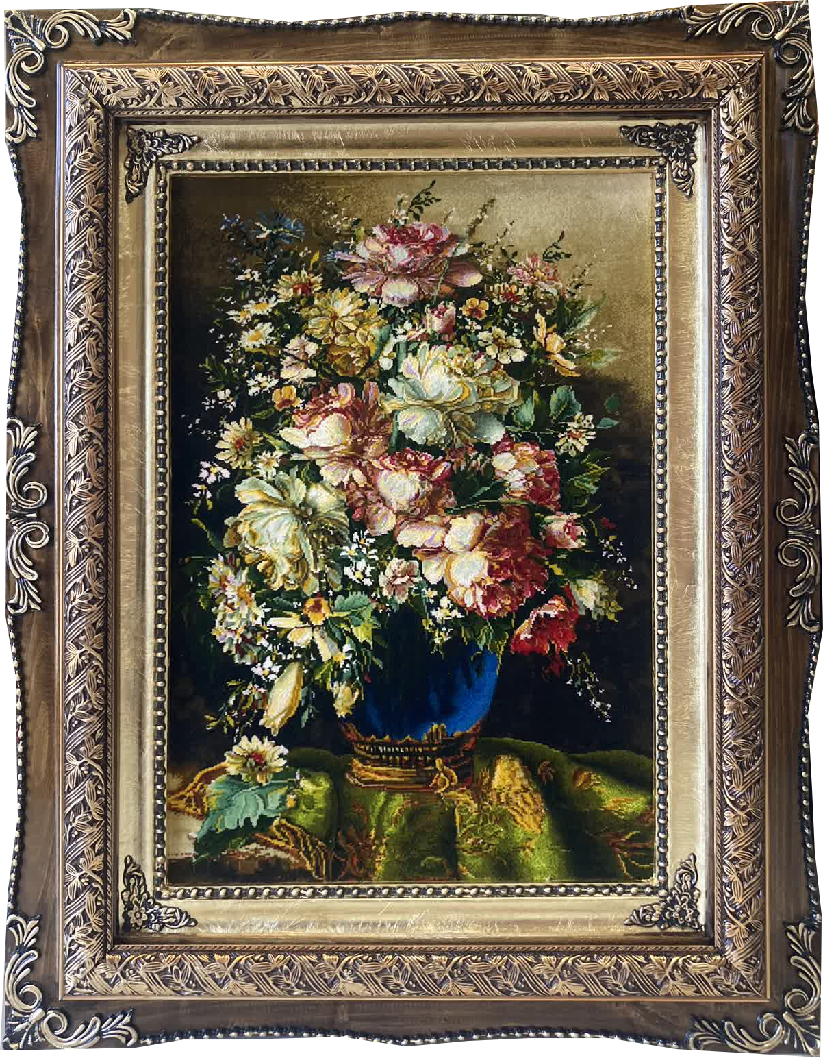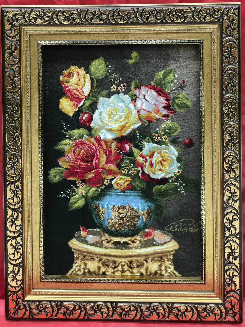 تابلوفرش چله نخ گل ابریشم طرح گل وگلدان کد2251