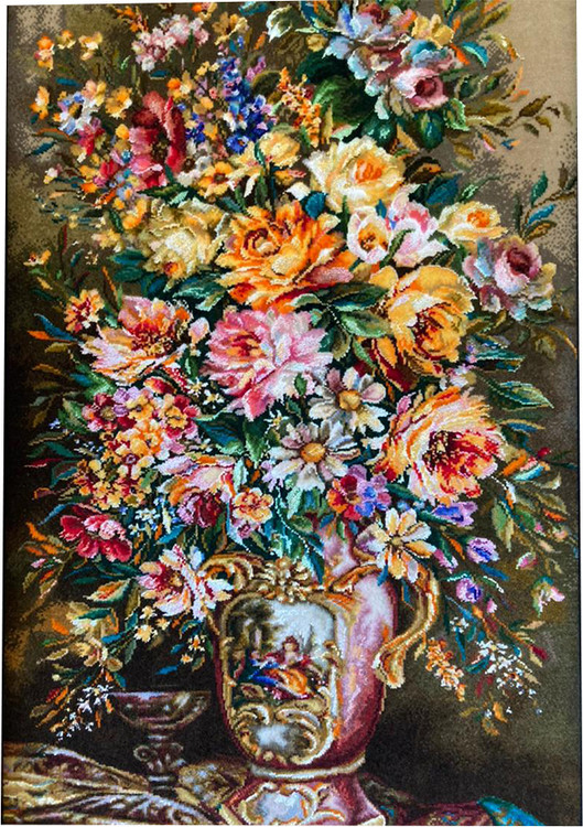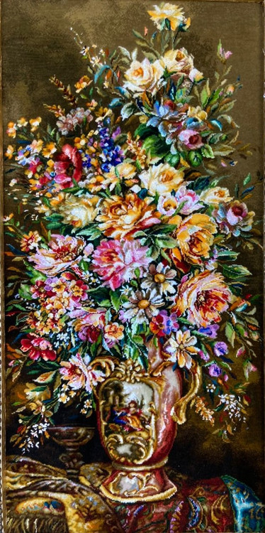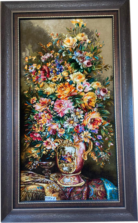 تابلوفرش گل گلدان چله ابریشم کد2136