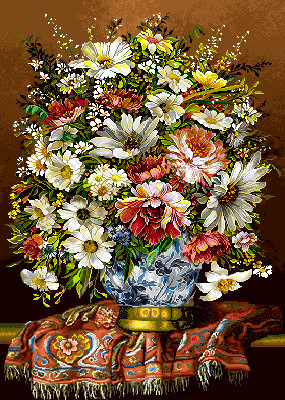نخ ونقشه تابلوفرش طرح گل وگلدان کدترکیب47