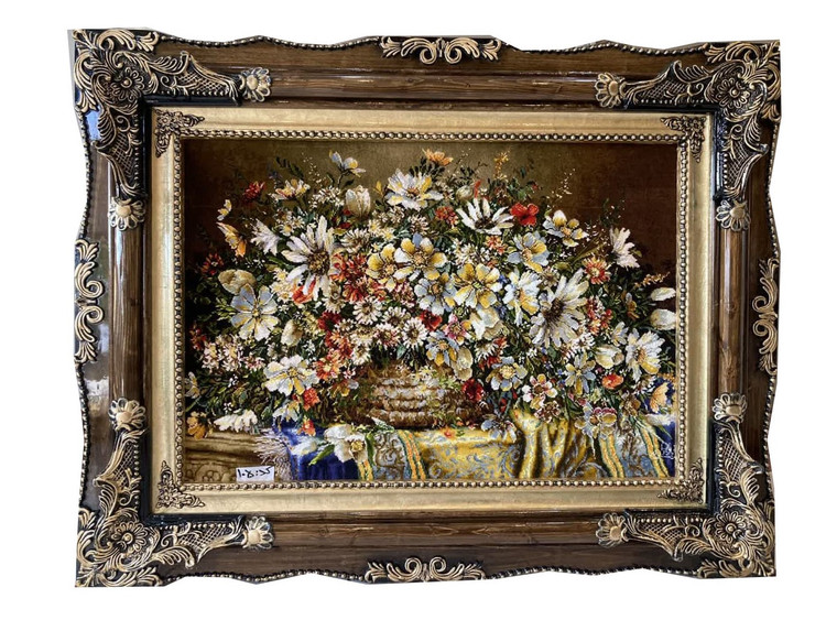 تابلوفرش گل عرضی و شمعدان چله نخ کد105