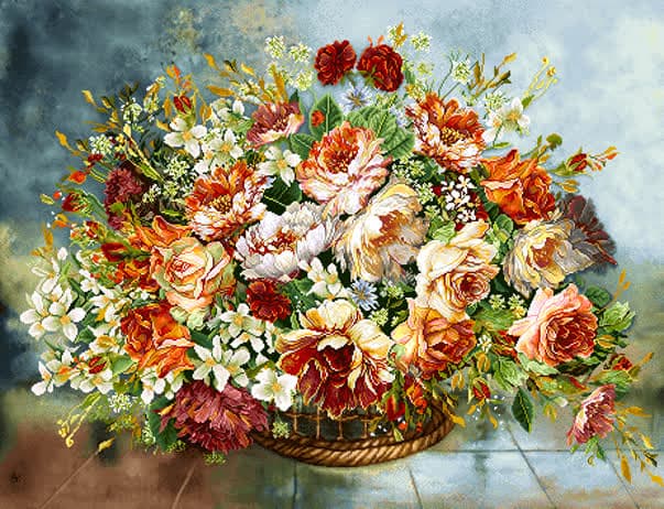 نخ ونقشه تابلوفرش طرح گل وگلدان کد-7c880py