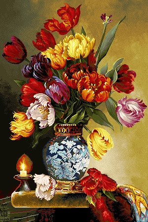 نخ ونقشه تابلوفرش طرح گل وگلدان کد3440