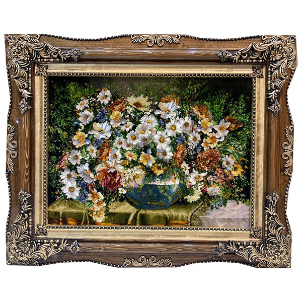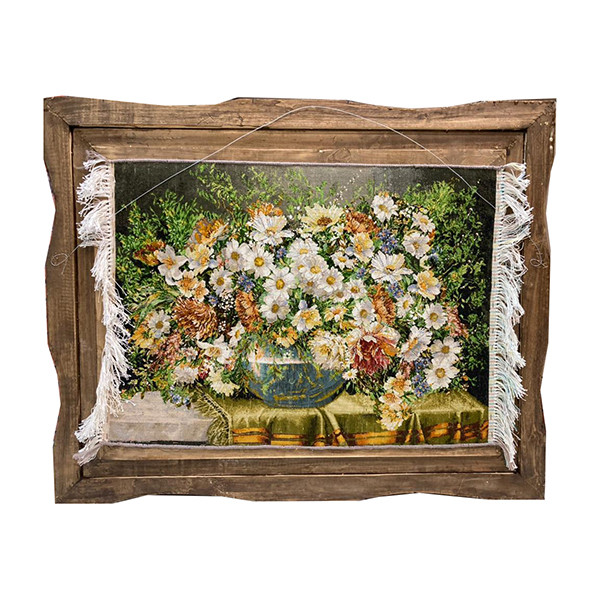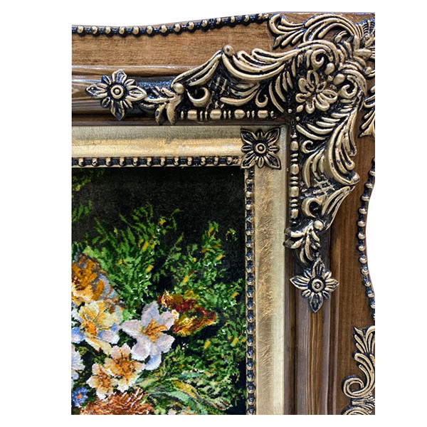 تابلوفرش چله نخ گل ابریشم طرح گل وگلدان کد2251